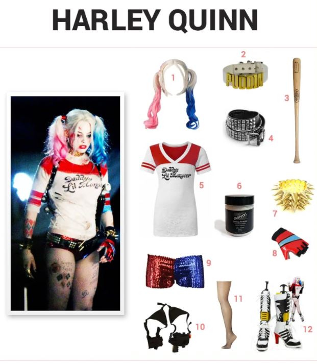 Krijg het uiterlijk van Dr. Harleen Frances Quinzel, M.D., beter bekend als Harley Quinn. Als Batmans tegenstander en Joker's vriendin is de waanzinnige superschurk ook lid van DC Comics' Suicide Squad. Verkleed je als Harley Quinn met een roze en blauwe kleurverlooppruik, Daddy's Lil Monster Burnout T-shirt, naadloze zwarte visnetpanty's, blauwe en rode pantyshorts met lovertjes, klassieke leren riem met piramides, Suicide Squad Biker-handschoenen en Harley Quinn-schoenlaarzen. Ga aan de slag met Mehron White Setting Powder en voltooi Harley's kostuum met een Puddin Neck Collar Choker, Gold Spike Stretch Poparazzi-armband, Tactical Cross Draw-schouderholster en Louisville Slugger Baseball Bat.