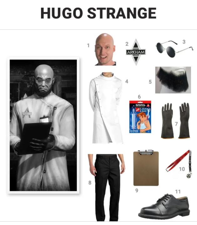 Hugo Strange is een genie dat verkeerd is gegaan. Zijn scherpe baard en zwarte zonnebril waarmee hij zijn meedogenloze ogen zo elegant verbergt, versterken zijn gekke wetenschapperslook. Maar hij doet de dingen niet alleen. Geef je cosplay dus wat pit en breng een paar Batman-schurken en bondgenoten samen om de ultieme cosplaygroep te creëren.