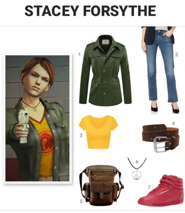 Transformeer in Stacey Forsythe uit de Dead Rising-videogamefranchise met deze coole kostuumgids! Je moet een groen jasje, een blauwe spijkerbroek, een gele crop top met v-hals, een riem met dubbele tanden, een bruin leren etui, een hanger met een vredeshanger en rode schoenen voor het volledige kostuum.