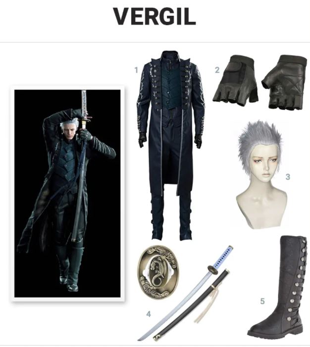 Vergil is een introverte en stille man en heeft een koude en meedogenloze drang naar macht. Hij heeft een morele code zoals elke krijger. Hij gelooft bijvoorbeeld dat het gebruik van vuurwapens als goedkoop wordt beschouwd. Dante, zijn broer, probeert de mensheid te beschermen tegen de demonen, terwijl Vergil probeert demonische macht voor zichzelf op te roepen. Om het uiterlijk van Vergil te krijgen, heb je een Vergil-kostuum, vingerloze handschoenen, zwarte laarzen, Katana-zwaard en een pruik met wit haar nodig.