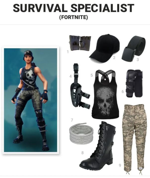De Survival Specialist is een van de zeldzame vrouwelijke skins voor de Fortnite Battle Royale. Om de huid van de Survival Specialist te cosplayen, draag je een zwarte tanktop met een grijsachtig schedelpatroon. De outfit heeft ook een pet, zwarte junglelaarzen, zwarte handschoenen en een grijze, stoere legercamouflage-jeans. De outfit van de Survival Specialist maakt geen deel uit van een set en staat op zichzelf. Als je de Survival Specialist-skin aantrekt, zie je er meteen uit alsof je klaar bent voor Battle Royale!
