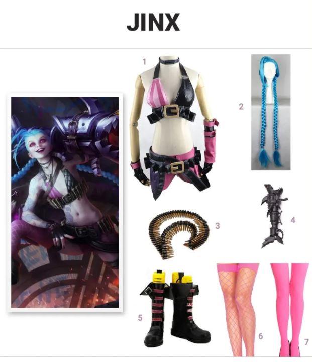 Jinx is het snelle en gemene personage dat verschijnt in de online strijdarena-videogame League of Legends. Het is het doel van Jinx om grote schade aan te richten zonder na te denken over de gevolgen, waarbij ze meestal een spoor van vernietiging op haar pad achterlaat. Ze doet haar best om graffiti te schrijven op plaatsen zodat iedereen weet dat zij verantwoordelijk is voor de chaos. Ook al is ze een klein meisje dat schattig en lief lijkt, onderschat haar slechte neigingen niet! Ze is een impulsieve crimineel die altijd net buiten het bereik van de wet ligt. Krijg het uiterlijk van de Losse Canon met deze Jinx-kostuumgids.