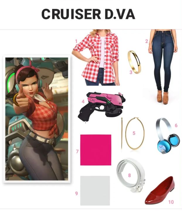 Overwatch is een teamgebaseerde first-person shooter van Blizzard Entertainment. D. Va is een populair personage dat spelers kunnen kiezen en heeft verschillende skins, zoals Cruiser, dat een geweldige optie is om te cosplayen. Haar achtergrondverhaal in de game is dat ze een professionele gamer was die vervolgens werd ingehuurd door de Zuid-Koreaanse regering. Ze werd gerekruteerd als mechpiloot voor een Omnic-invasie en leerde de besturing vrij snel.