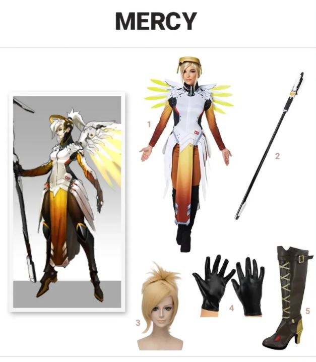 Mercy is de roepnaam van de Zwitserse arts Angela Ziegler, een nanobioloog en veldhospik die in de frontlinie van gevechten werkt. Het is haar taak om de zieken en gewonden te genezen, maar dat betekent niet dat ze niet kan vechten. Ze draagt een Walkürekostuum met engelenvleugels, waardoor ze eruitziet als een beschermengel. Ze is niet alleen in staat om te genezen, maar ze kan ook mensen versterken en opwekken met haar Caduceus Staf. Haar andere tools omvatten ook een Caduceus Blaster, Guardian Angel-beweging en een ultieme Valkyrie-vaardigheid. Krijg het uiterlijk van de speelbare held met deze Mercy-kostuumgids. Transformeer in Mercy met een Mercy-kostuum, speelgoedstaf, blonde pruik, zwarte handschoenen en zwarte laarzen.