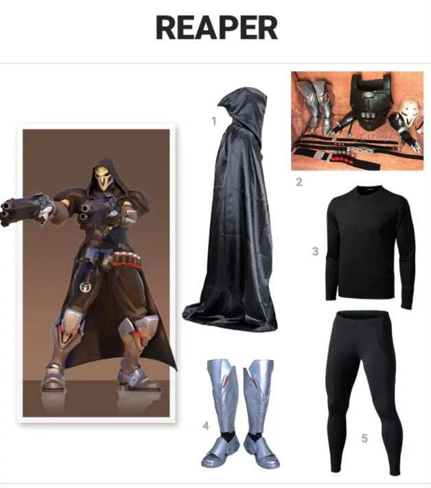 Cosplay The Reaper met een eenvoudig zwart atletisch shirt en een compressiebroek voor heren. Draag vervolgens een zwarte cape met capuchon, zodat mensen niet herkennen wat hen nadert. Trek tot slot de Reaper Shoes en de Reaper Costume Props aan. Nu ben je klaar om de levenloze lichamen van je meest hatelijke vijanden achter te laten!