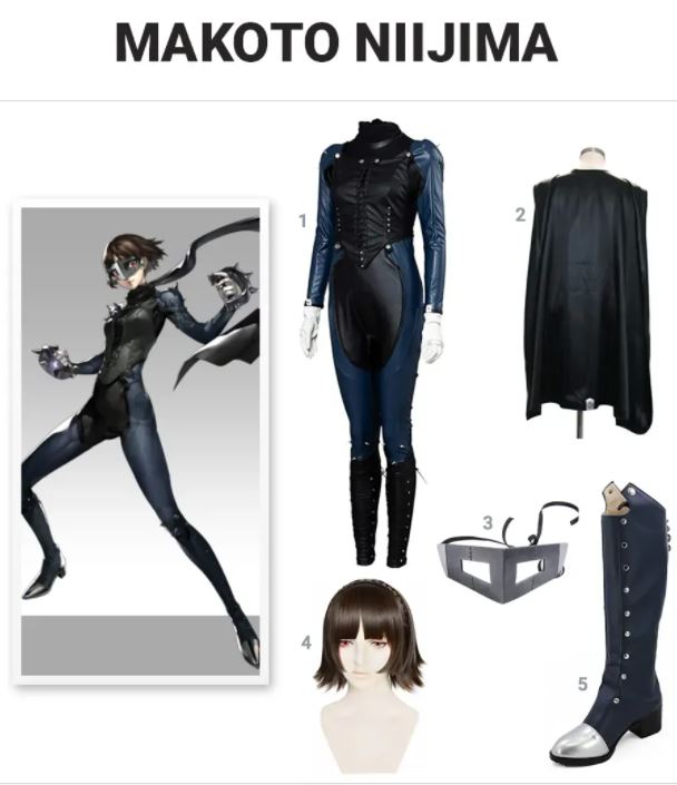 Makoto voegt zich bij de Phantom Thieves of Hearts nadat hij hen heeft geholpen Junya Kaneshiro te verslaan. Ze is klaar met het meisje met twee schoenen te zijn dat werd gezien als de perfecte erestudent. Ze is vastbesloten om meer trouw aan zichzelf te zijn. Ze ergert zich nu over het algemeen aan gezaghebbende cijfers. Makoto is meer een tomboy dan mensen doen geloven. Krijg het uiterlijk van de jongere zus van Sae met deze Makoto Niijima-kostuumgids. Ook jij kunt door de gangen van je school lopen verkleed als Makoto Niijima met een Niijima-pak, zwarte cape, Niijima-masker, Niijima-pruik, Niijima-laarzen.