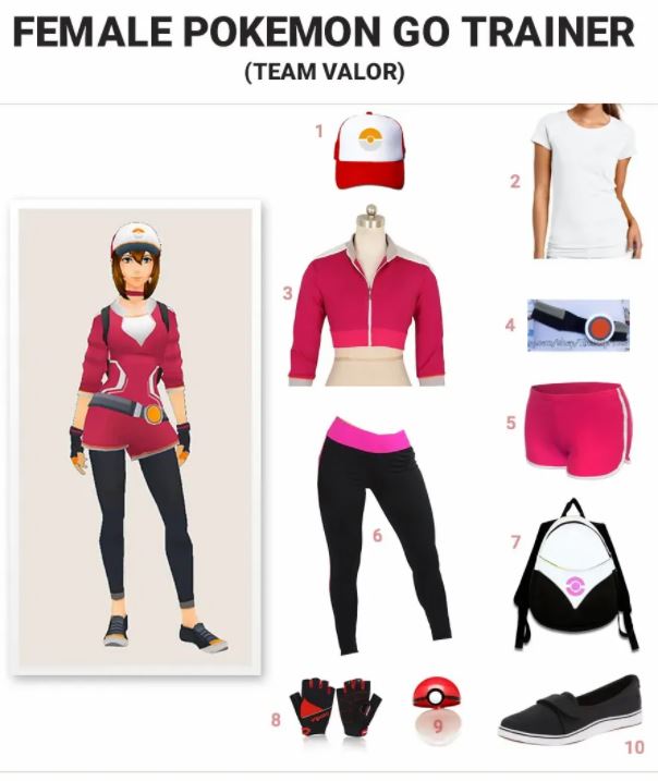 Krijg de cosplay-look van de vrouwelijke Pokemon Go-trainer van Team Valor terwijl je ten strijde trekt in de nabijgelegen Pokemon Pokegym. Bekend als extreem fel, competitief en meedogenloos, ook jij kunt je kleden als de Team Valor-trainer. Draag een Pokemon Go Girl-trainerhoed, Pokemon Go Trainer cropped hoodie Team Valor, een effen T-shirt met ronde hals en korte mouwen, een Basic Athletic Sport-katoenen short, een yogabroek van polyestermix voor dames en een Shelborne-instapper voor dames Vlak. Vang ze allemaal wanneer je racefietshandschoenen, Pokemon Go-rugzak, Pokemon GO-riem en -gesp en Pokeball-speelgoed draagt.