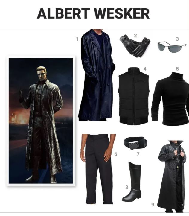 Albert Wesker van Capcom's Resident Evil-videogamefranchise staat aan de donkere kant van cosplay, maar deze schurk is een leuk kostuum om na te maken. Wesker heeft absoluut de look en feel van een slechterik, maar het kan een gemakkelijk kostuum zijn om zelf samen te stellen. Misschien heb je al enkele kostuumstukken zoals het coltrui, het zwarte gewatteerde vest, de zonnebril, de handschoenen, de zwarte broek en de zwarte regenlaarzen in je kast. Maar je kunt zeker niet voor Albert Wesker doorgaan zonder een zwarte trenchcoat. U kunt dat het beste online bestellen samen met de militaire webriem.