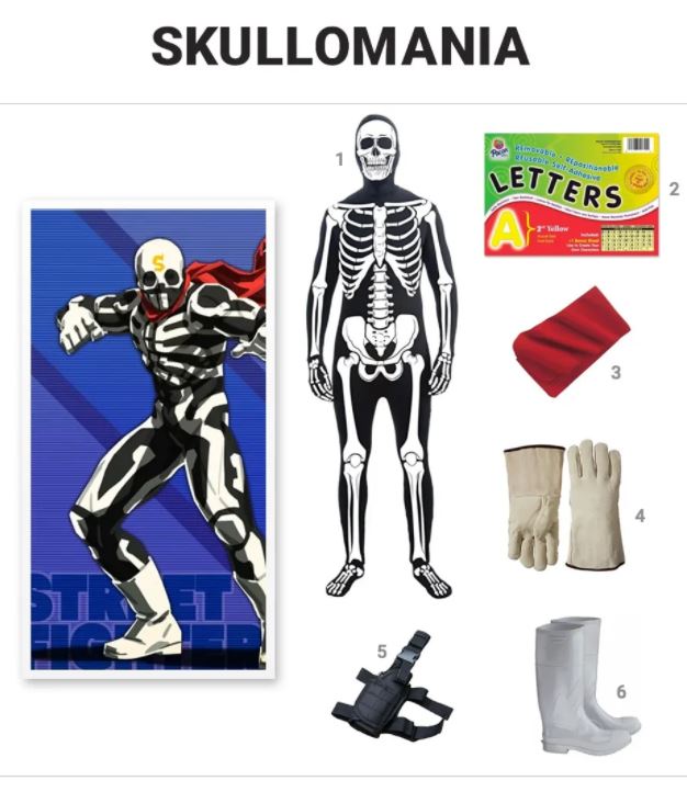 Skullomania is een speelbaar personage uit de populaire Street Fighter EX-videogameserie. Saburo Nishikoyama was maar een gewone verkoper die gedwongen werd op te treden in een optreden in een warenhuis. Terwijl hij zich verkleedde voor de voorstelling, kwam er een passie in hem op die hem ertoe aanzette een burgerwacht te worden die de naam Skullomania aannam. Om zich hierop voor te bereiden, begon hij te strijden tegen vooraanstaande krijgskunstenaars van over de hele wereld. Verkleed je als de superheld met het uiterlijk van een skelet met deze Skullomania kostuumgids.