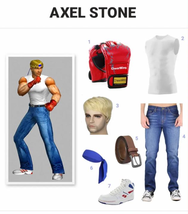 Verkleed de straatstijl van Axel en verander het in een kostuum met een wit spiershirt, een blauwe spijkerbroek met een bruine riem en een goudblonde pruik met een blauwe hoofdband eraan toegevoegd. Trek een paar witte en rode hoge schoenen aan en trek een paar halfvingerbokshandschoenen aan om stoten uit te delen die alleen Axel Stone kan maken!